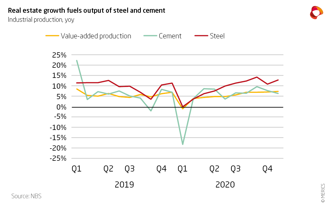 - The value-added of all major industries tracked by the National Bureau of Statistics (NBS) returned to growth by the end of 2020, with the exception of food processing and transportation equipment (including rail, ships and aircraft). Robust industrial output was evident in increased demand for machinery. Electric machinery and equipment was the fastest growing sector; in November, it recorded its highest level of growth since February 2012, with output up 18 percent.