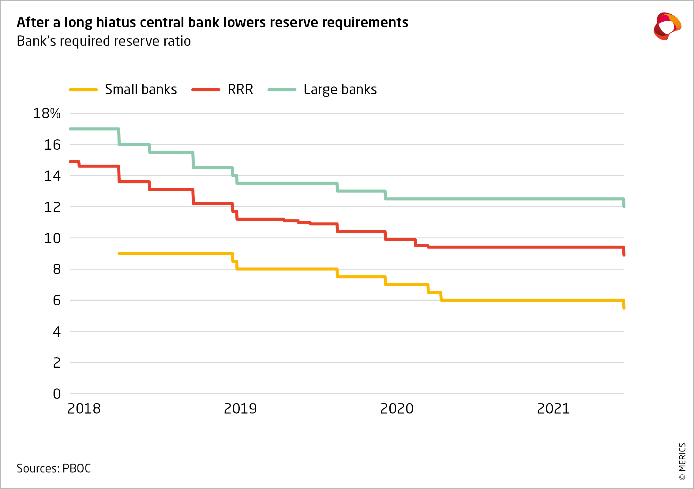 - The economic recovery has reduced the need for emergency lending, leading to lower aggregate credit growth. However, the People’s Bank of China (PBOC) is concerned about the recovery losing momentum and the strong yuan. The central bank has responded by signaling looser monetary policy, without lowering interest rates. Instead, it further reduced the banking sector’s required reserve ratio (RRR), a move that should free up additional liquidity. The measure was targeted to improve support small and medium sized companies (SMEs).