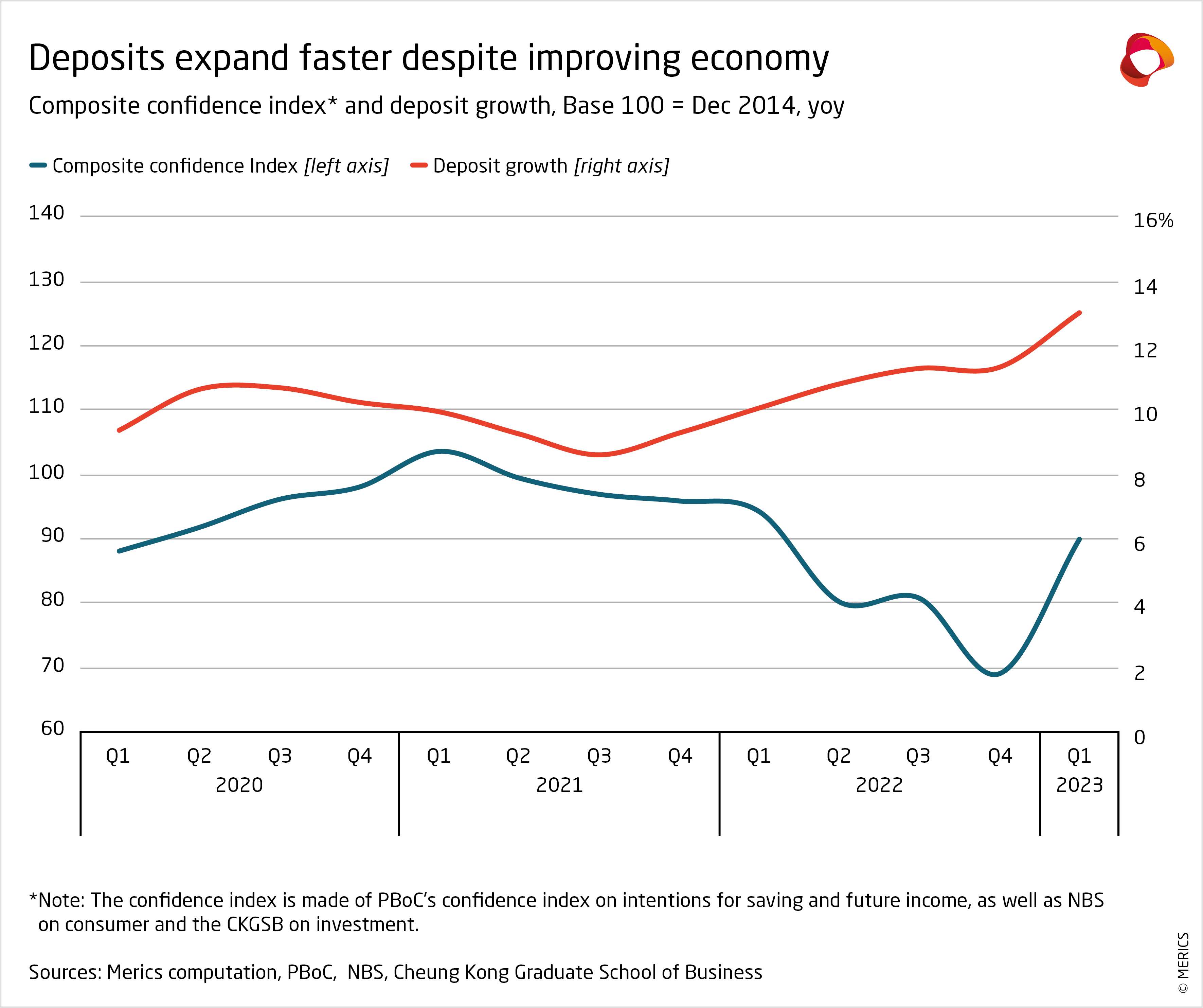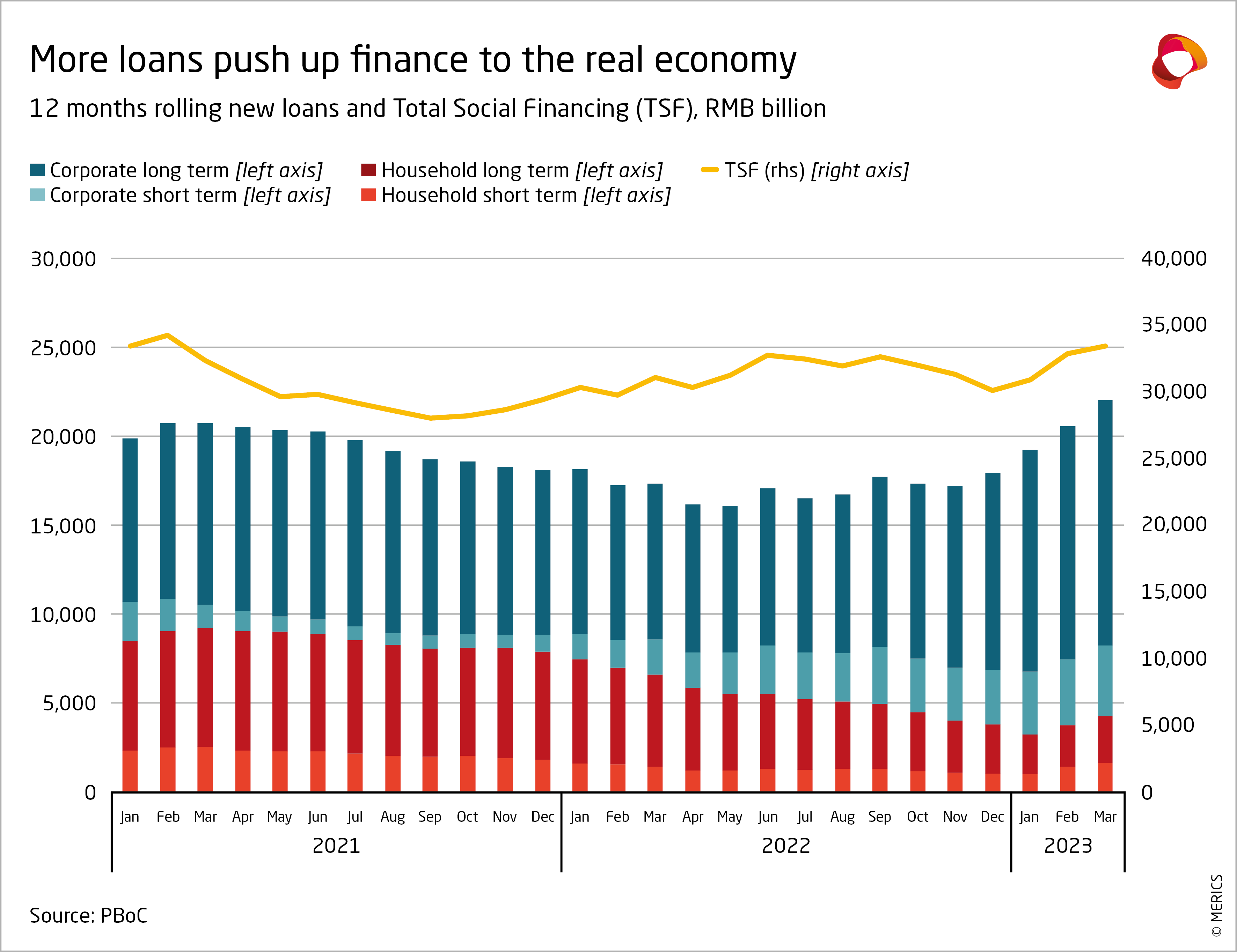 - Aggregate financing picked up over the quarter, expanding by 10 percent in March after dipping to just 9.4 percent in January. But it was outstripped by deposit growth, which expanded by 12.7 percent during the same period – a level last seen during financial market troubles in 2015/16 (see exhibit 1).