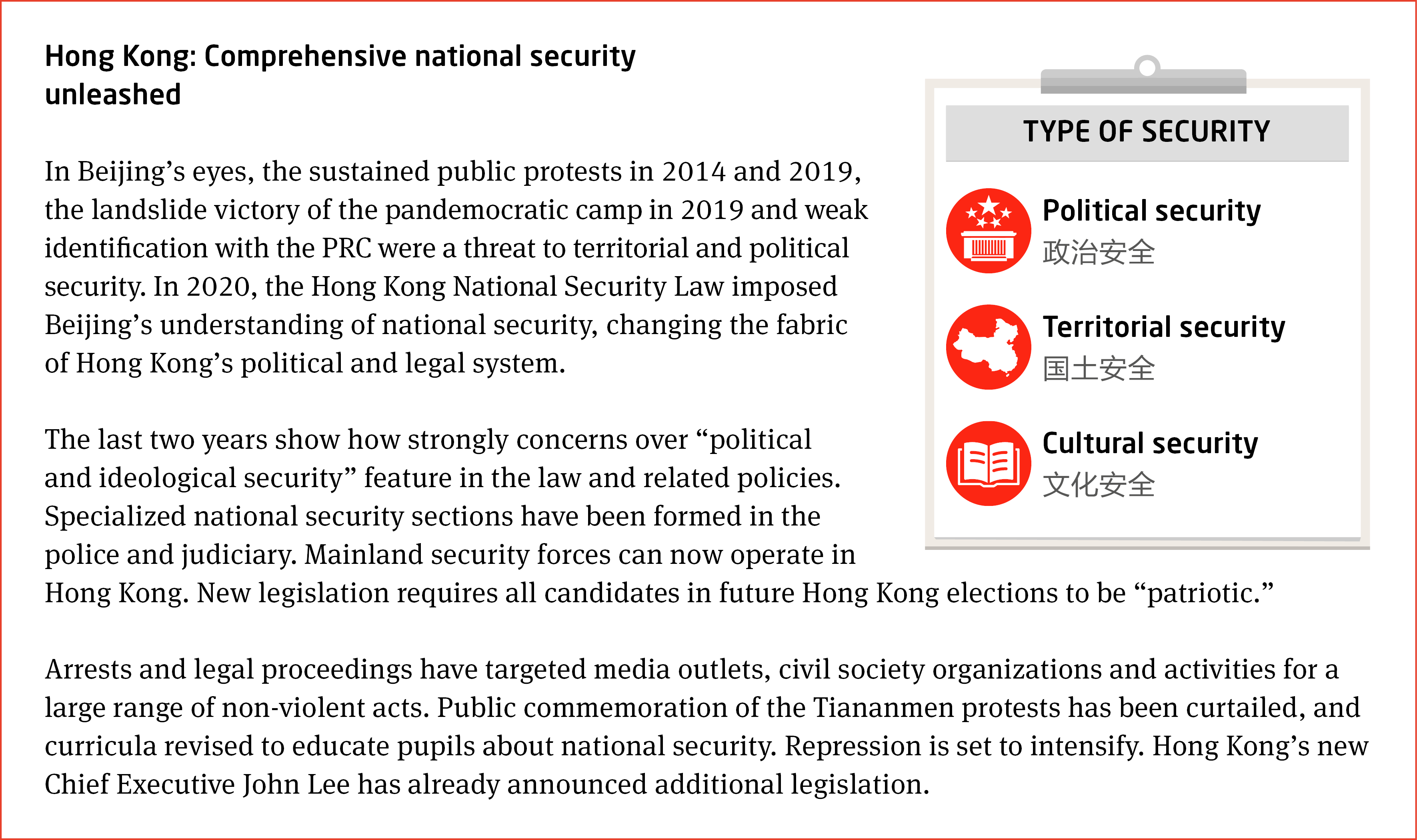 New, wider definitions of national security are emerging in many countries. However, China’s party and state leader Xi Jinping has turned national security into a goal in itself: his all-encompassing view of national security has become a core element of the Chinese Communist Party’s (CCP) world view and governance model. Amid rising tensions with Western nations, complicated by Russia’s war in Ukraine and global supply chain problems, this paradigm heightens the risk of overreactions.